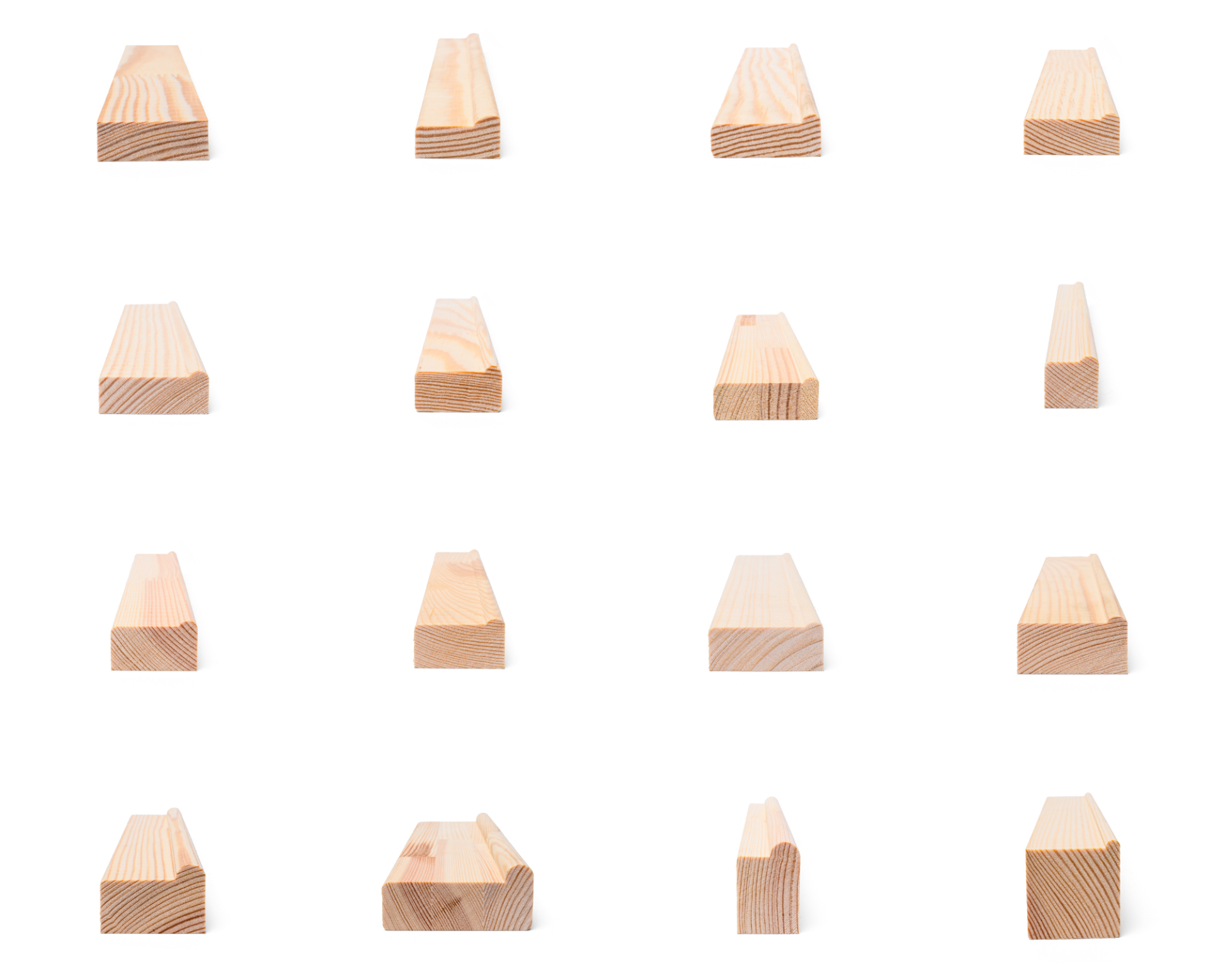 Todos los perfiles están disponibles con unión dentada o laminados, lo que garantiza una mayor rectitud de las molduras.